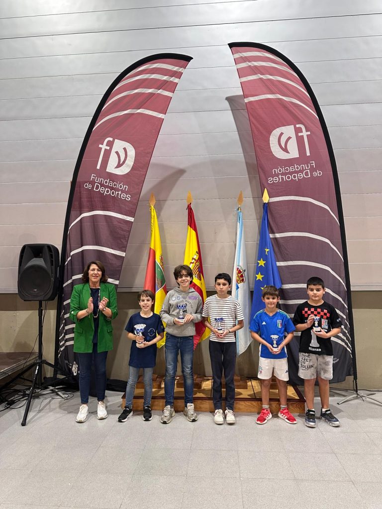 O podio quedou conformado por Javier Lema, da EX Pontevedra; Martín Moreira, compañeiro de Javier; David Alvarez, do CA Lucena; Noé Diz, do CA Padrón; e Telmo Vicente, do Xadrez Rianxo. O mellor clasificado do CX Fontecarmoa foi Lois Roo, na duodécima posición.