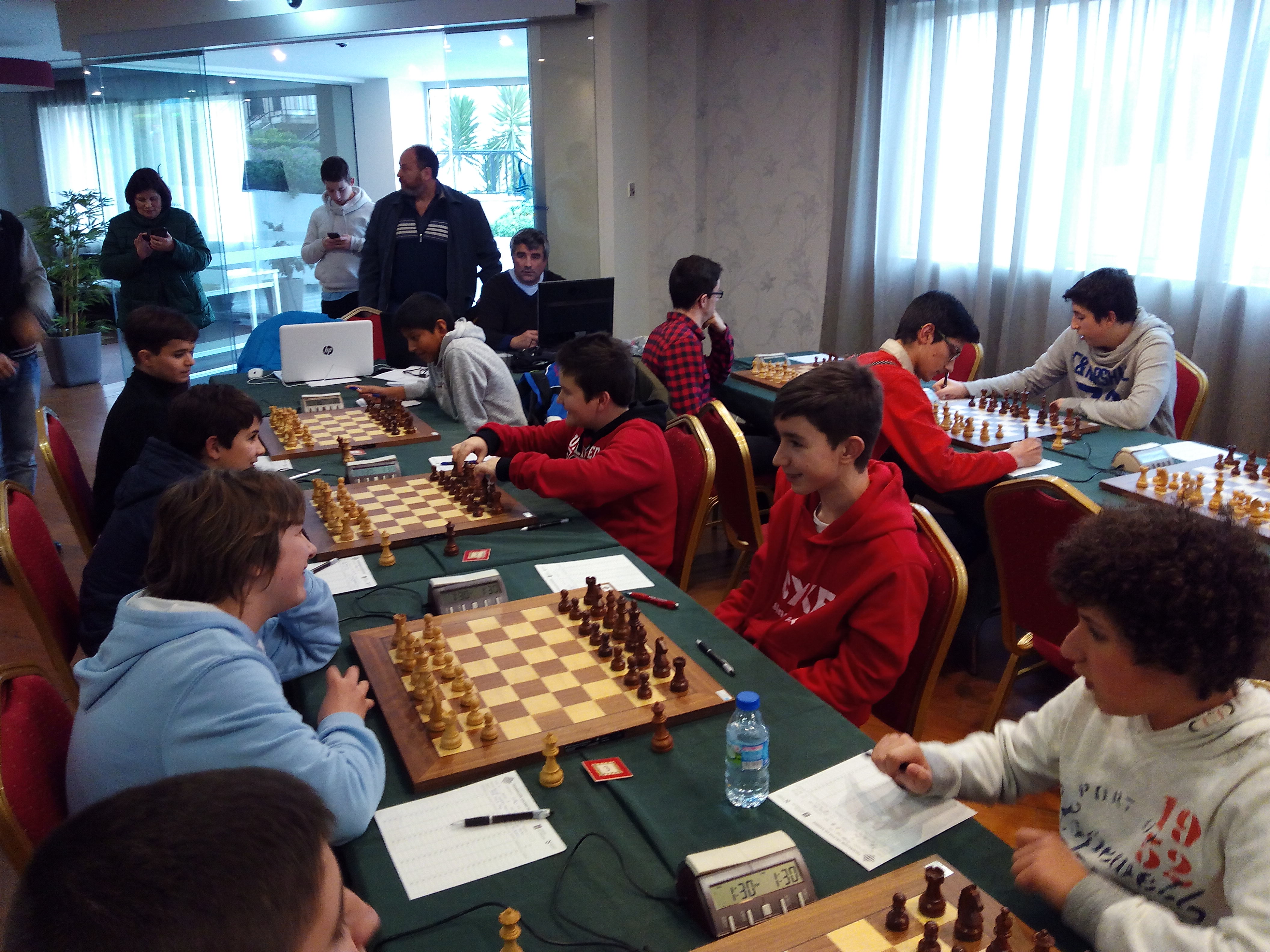 Segunda jornada de los campeonatos gallegos en Viveiro. En sub-14 teníamos un duelo en la cumbre entre Pablo y Andrés. El ataque indio de rey que jugaron llevó a una compleja partida en la que cada uno jugaba en un flanco. El ataque de Pablo hizo que la balanza cayese de su lado tras una larga partida. Miguel salía bastante bien de la apertura, tras plantear una variante Sevilla de la defensa Grunfeld en la mesa 2 ante Alfonso López. Sin embargo su prometedora posición se fue diluyendo, venciendo finalmente el ferrolano. Óscar y Ángel ganaron de manera convincente.