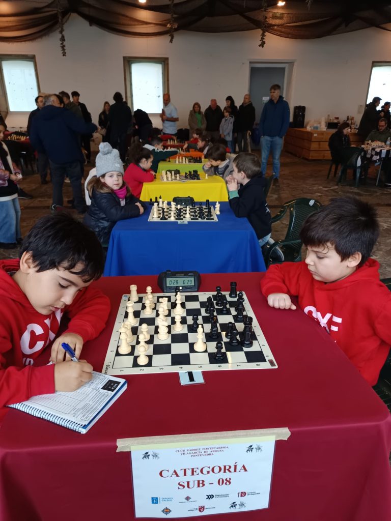 No plano deportivo, a categoría sub8 partía cun claro favorito, Asier Cores, o único xogador con elo, e moito máis curtido nas competicións, pois xa ten participado no Circuito Promoción varios anos. O xogador do CX Fontecarmoa levou o ouro tras acadar os 7 puntos en xogo. Tras el, e xa con 5 puntos, quedaron Brais Alvarez do CVC Valladares e Danna Fernanda do CX Mos.