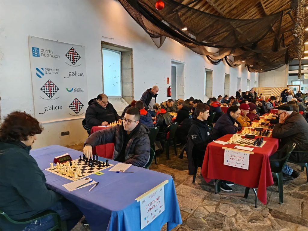 A categoría absoluta leva medio torneo xogado. Tras as primeiras 4 rondas só Miguel Palacios leva un pleno, con 4 victorias. Tras el 4 xogadores teñen 3’5 puntos: Pampillón, José Luis, Bernardo Rebollo e David Torres. Con medio punto menos temos dous xogadores do club, Oscar Victorero e Gonzalo.