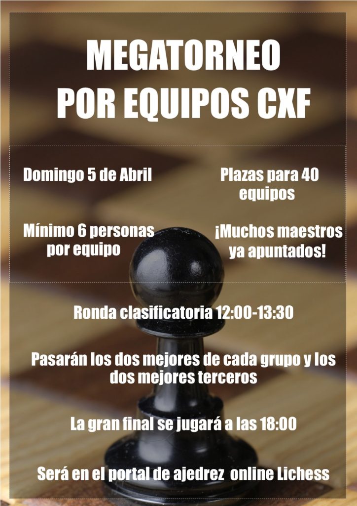 Nota: Recuerda que, para participar, necesitas registrarte en la plataforma GRATUITA www.lichess.org y crear un equipo con tus jugadores. Puedes jugar desde el Móvil, tablet o PC. Luego nos envías el nombre de tu equipo para poder enviaros el enlace del torneo y registrar el equipo.