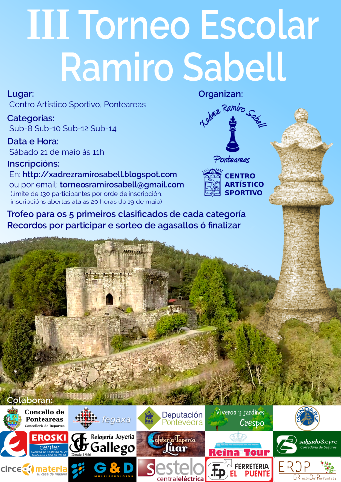 Torneos 2016 III Torneo Escolar Ramiro Sabell Jose Luis Bouzada hace 10 años 0 comentarios Acerca del autor Jose Luis Bouzada Administrator Visitar sitio web Ver todas las entradas Navegación de entradas Anterior: CAMPEONATO GALLEGO DE PARTIDAS RELAMPAGO SANTA RITA 2016Siguiente: VII Torneo PonteXadrez Deja una respuesta Cancelar la respuestaTu dirección de correo electrónico no será publicada. Los campos obligatorios están marcados con *Comentario * Nombre * Correo electrónico * Web Guarda mi nombre, correo electrónico y web en este navegador para la próxima vez que comente. Historias relacionadas Torneos 2016 EL MF LUCAS ABAL SE IMPONE EN LA CATEGORIA ABSOLUTA EN EL TORNEO SOCIAL Jose Luis Bouzada hace 9 años 0 Torneos 2016 CAMPEONATO SOCIAL DEL CLUB (VIERNES 25, SÁBADO 26 NOVIEMBRE) Roberto Vidal hace 9 años 0 Torneos 2016 X OPEN XADREZ McDONALDS VILAGARCIA 2016 (resumen) Jose Luis Bouzada hace 9 años 0