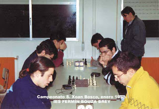 Adolfo organizaba en esos años unos Campeonatos Escolares de Ajedrez, en el ámbito de Vilagarcía, que sistemáticamente ganaban los jugadores de un Instituto de Formación Profesional: IFP FONTECARMOA (hoy IES FERMÍN BOUZA BREY); se daban varias circunstancias favorables: una buena generación de ajedrecistas jóvenes (fue alumno Roberto Patiño), un apoyo decidido a esta práctica desde la dirección del Instituto (fundado en 1978, su primer director democrático, Elías Lamelas, era amigo del jugador de O Grove Alberto García Besada, que dio varias simultáneas en el centro) y varios jóvenes profesores aficionados (Xurxo Novales y Roberto Vidal).