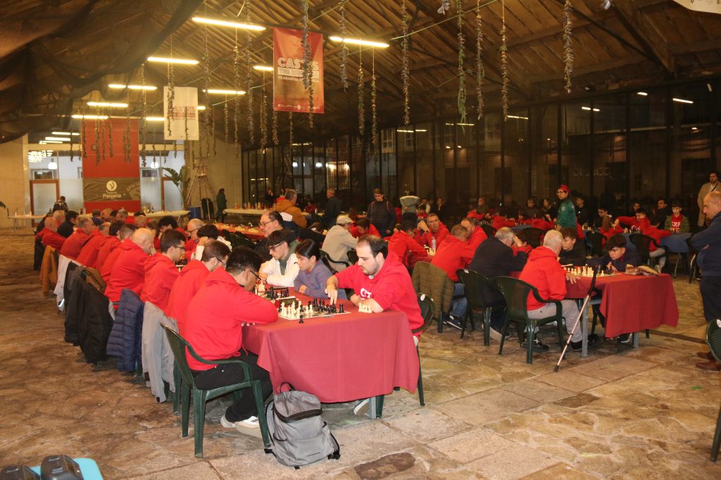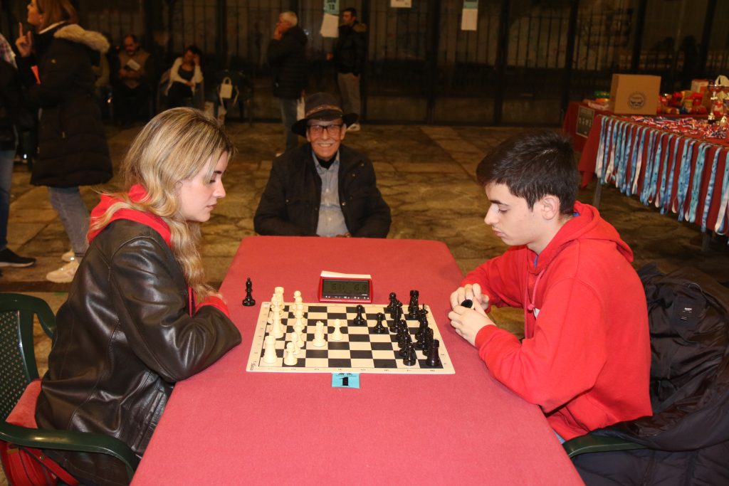 Máis de 90 xogadores participaron no social do pasado sábado na Praza da Peixería. Un cálido ambiente entre compañeiros, bautizo de competición para moitos e esperamos que unha boa experiencia para cativos, rapaces, non tan rapaces e veteranos, e para todos os familiares e amigos que se achegaron para disfrutar un sábado de xadrez.
