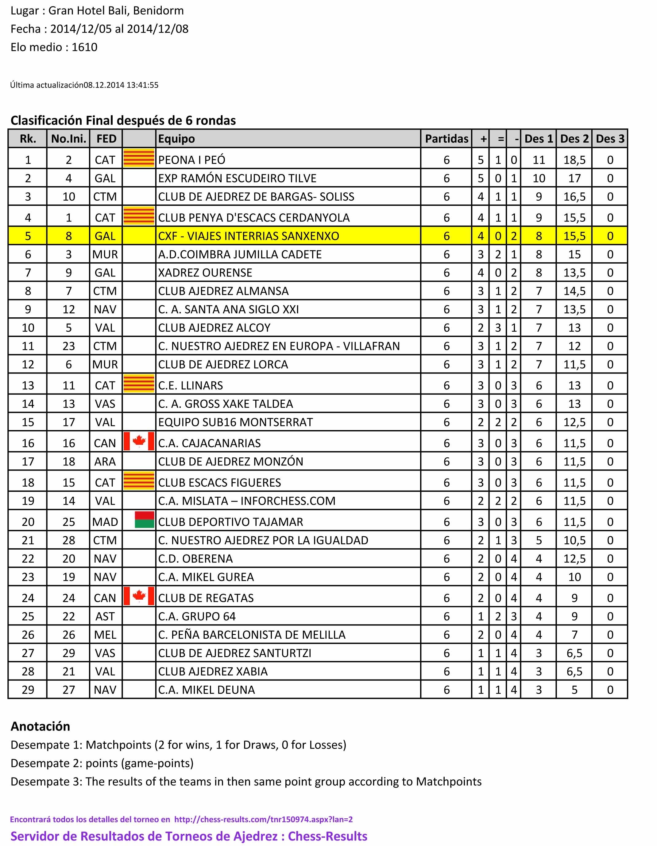felicitarles. El otro equipo, el XADREZ OURENSE, ha quedado 7º, sobre un total de 29 participantes.