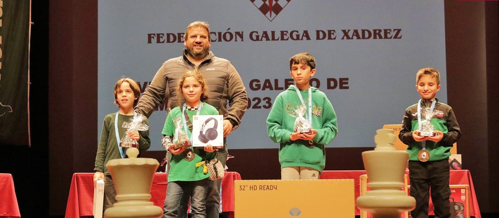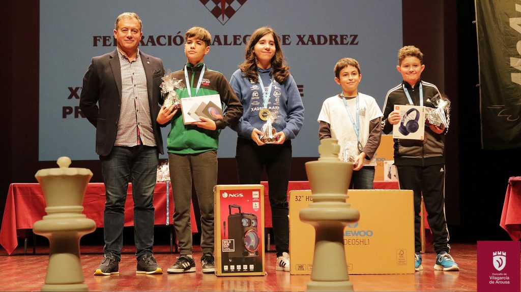 Con estas salvedades, que non lles quitan méritos, o campionato foi para Rubén Fernández, o Mestre Fide vigués da EX Pontevedra. Estiveron con el Iago Fernández á súa dereita e Antón Quntás da USC á súa esquerda. O cuarto e quinto postos foron para Lucas Rey e David Suárez, ambos os dous do CX Fontecarmoa.